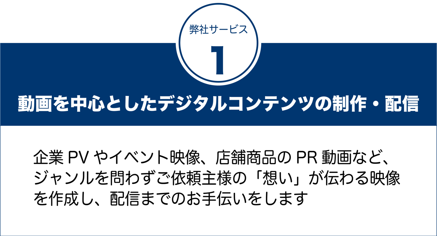 | 事業内容 | 映像等デジタルコンテンツの企画・制作・編集および販売 |